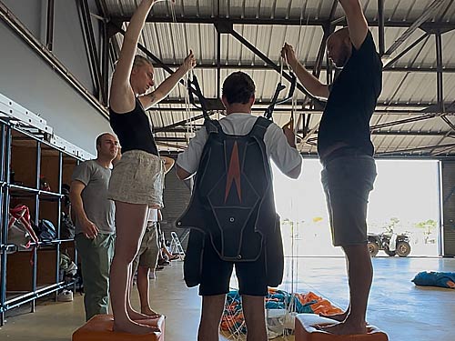 You get a lot of information, but everything is practical. We practise movements on the ground, run through the exit step by step and make sure you know exactly what to do and when. You notice your focus shifting from “help, I am jumping out of a plane” to concrete steps you can carry out.